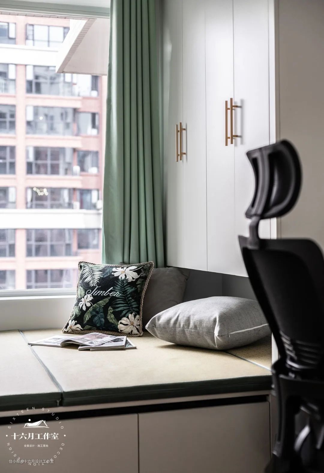 书房选择绿+白的搭配,非常清爽,同时也将空间作用发挥到了最大化。