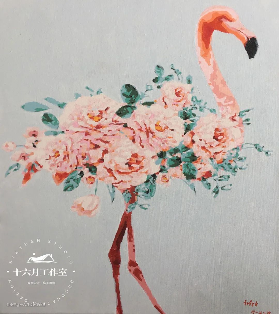 以火烈鸟为原型衍生出的一幅画,象征着忠贞和爱情。