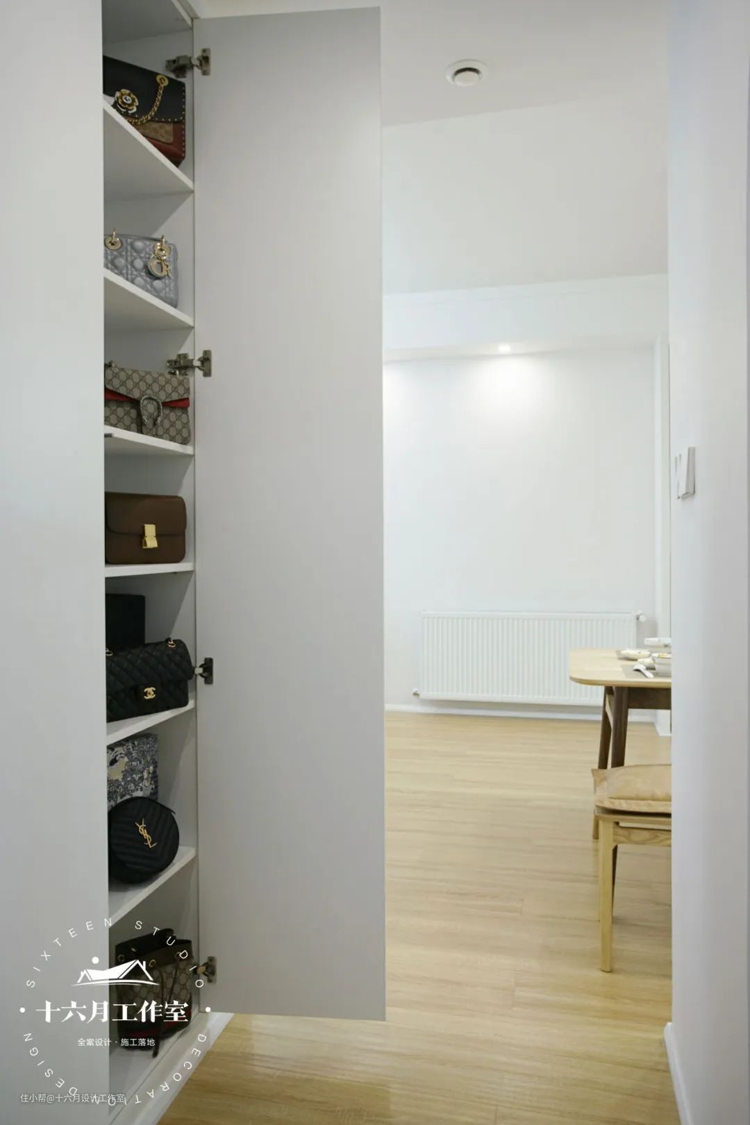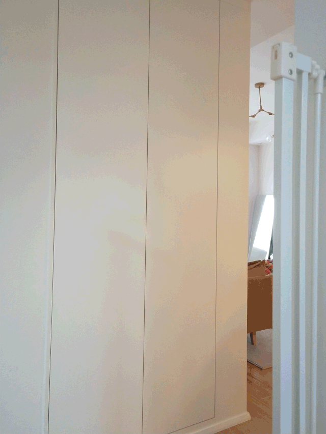 ③主卧到榻榻米书房的墙体全部打拆,主卧做的嵌入式衣柜,占用了一部分榻榻米的空间。