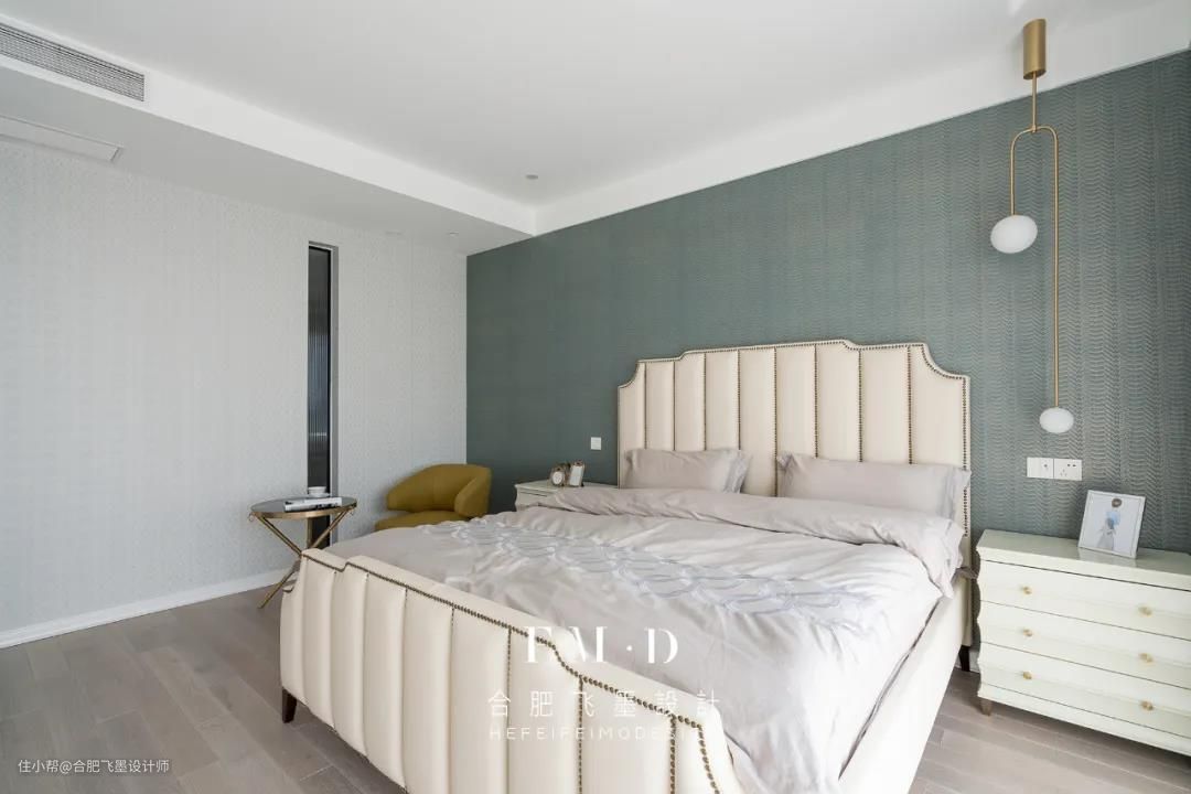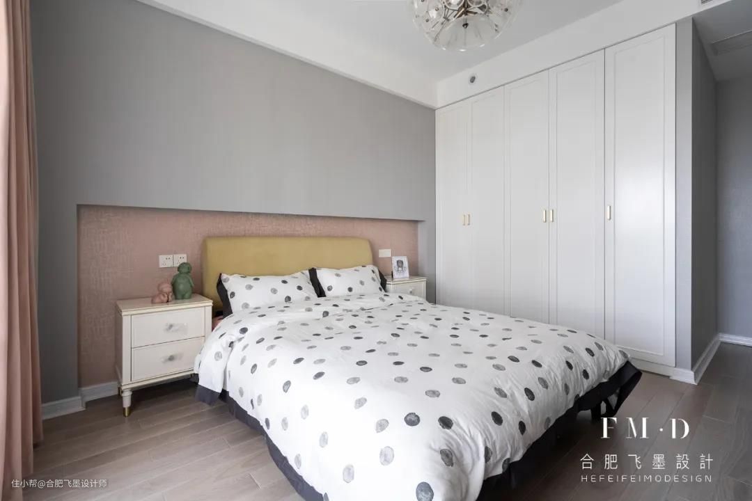 进入主卧室后,侧边墙一排柜子到底,实现卧室超强储物收纳,胜过一间单独的衣帽间!