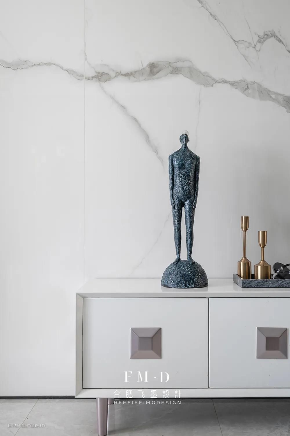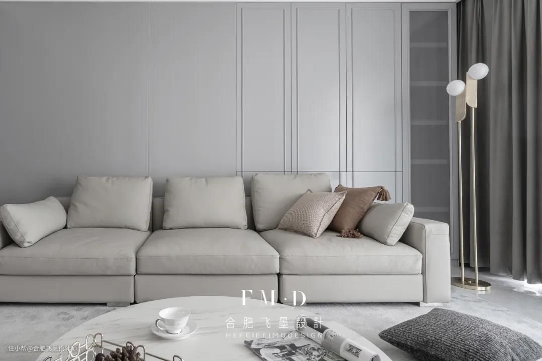客厅色彩搭配细节上,采用灰与白奠定空间的主基调,简单的线条丰盈客厅的立体感,大理石背景墙成就了整体的品质感;去除繁复,反而更有高级范儿。