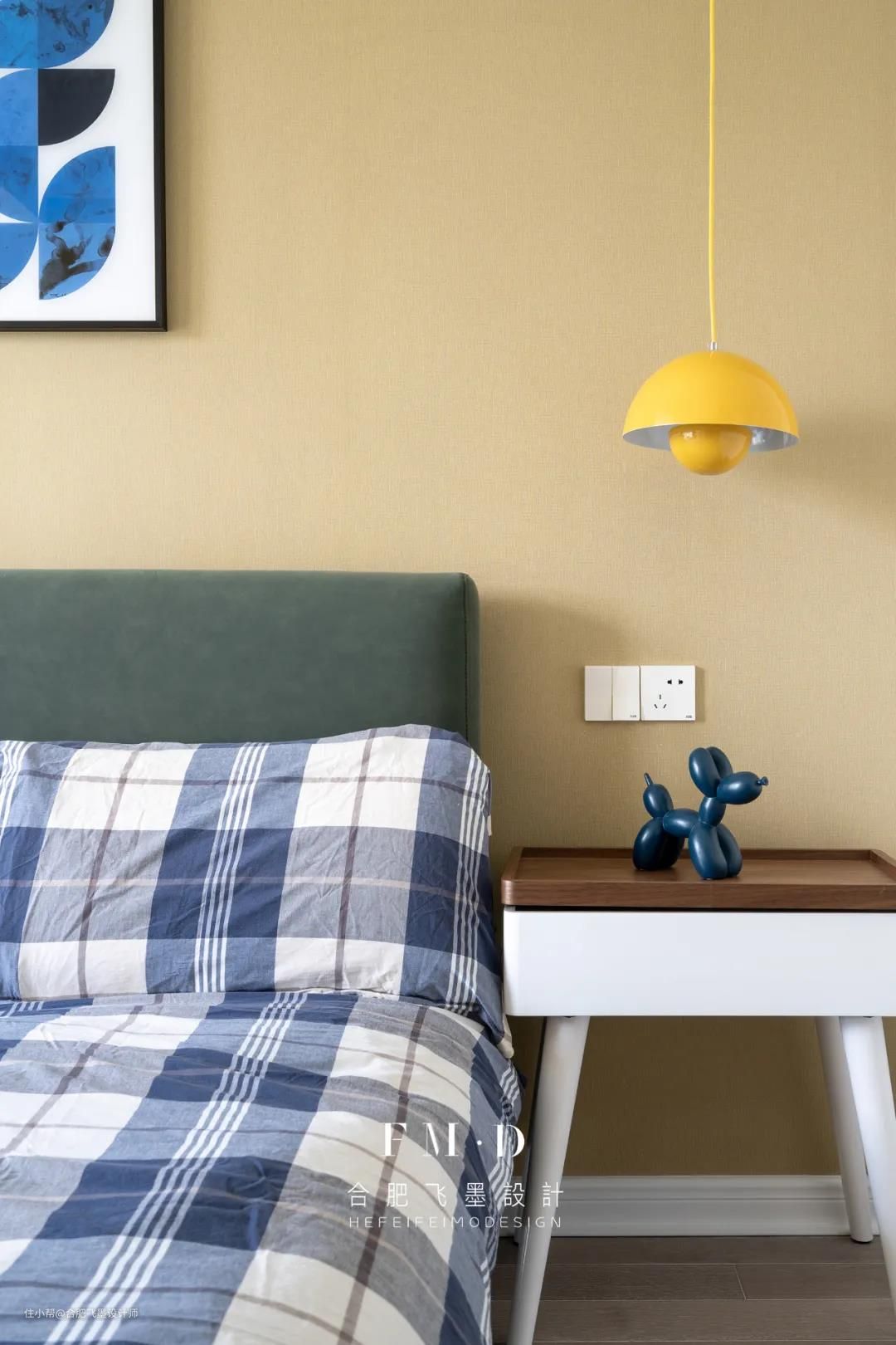 次卧结合了卧室+书桌+收纳的功能,全方面满足屋主孩子的生活与学习,米黄色的主色调与床头小巧的灯相映照,让空间更加的个性化。