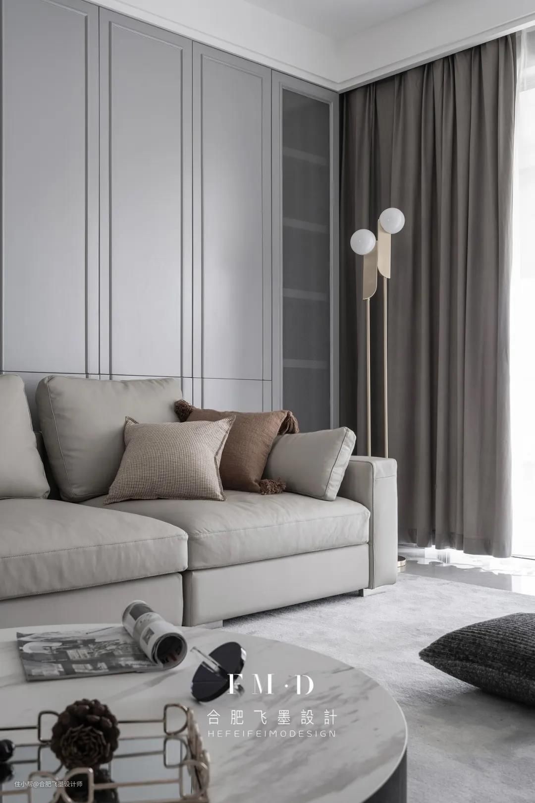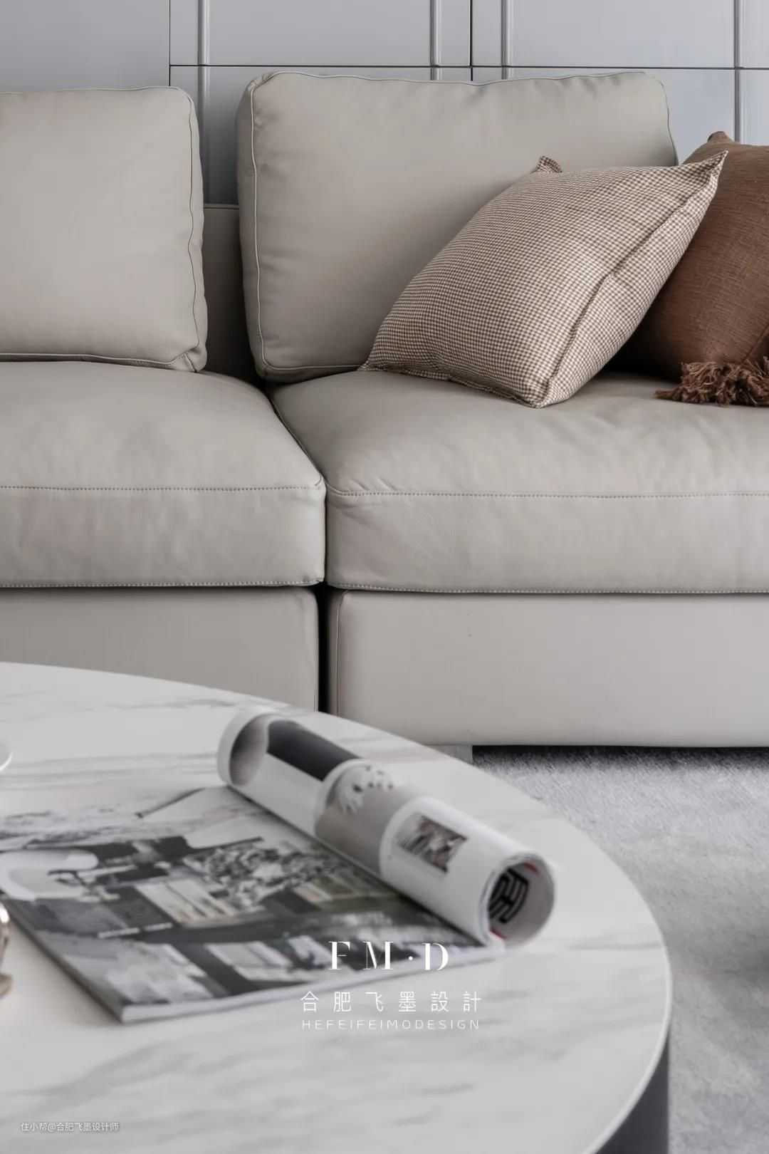 客厅色彩搭配细节上,采用灰与白奠定空间的主基调,简单的线条丰盈客厅的立体感,大理石背景墙成就了整体的品质感;去除繁复,反而更有高级范儿。
