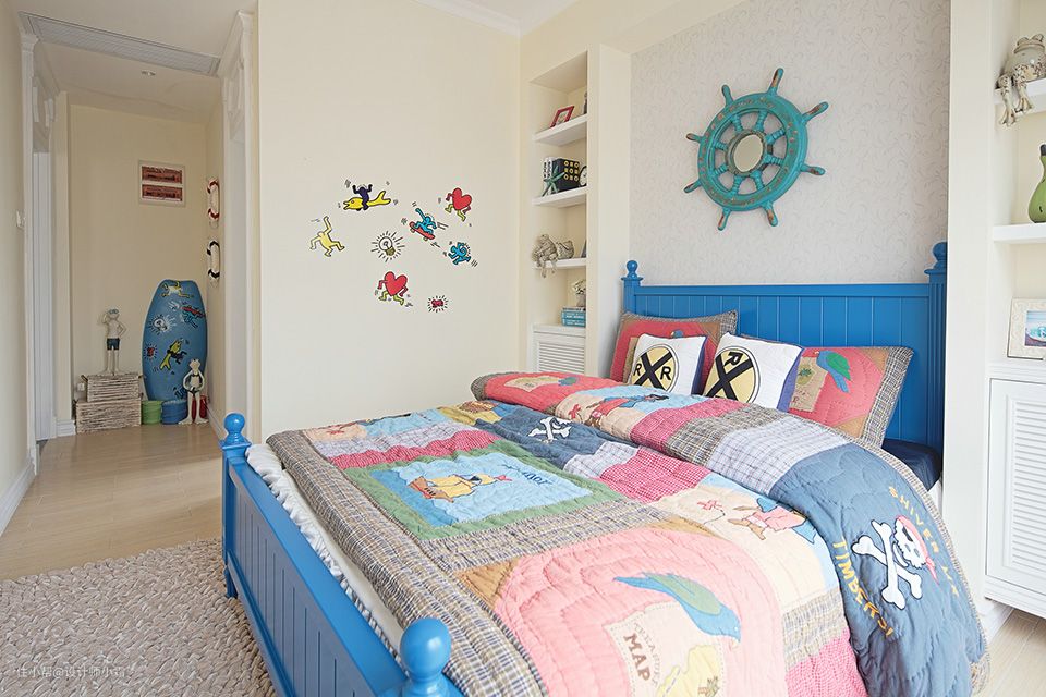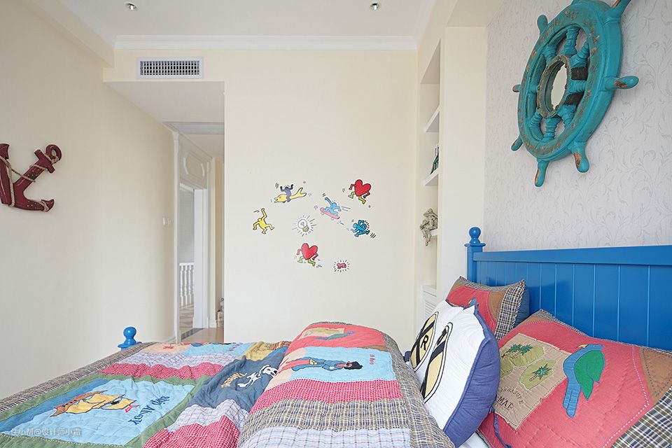 儿童房完美的给小朋友造就了个水手梦,童趣的床品、舒适的布局,让整个空间变得亲切、安逸