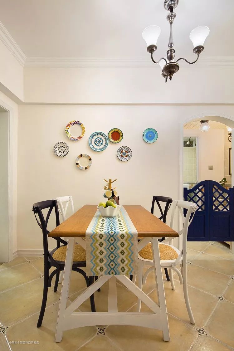 用比较流行的五彩碟来装饰餐厅背景