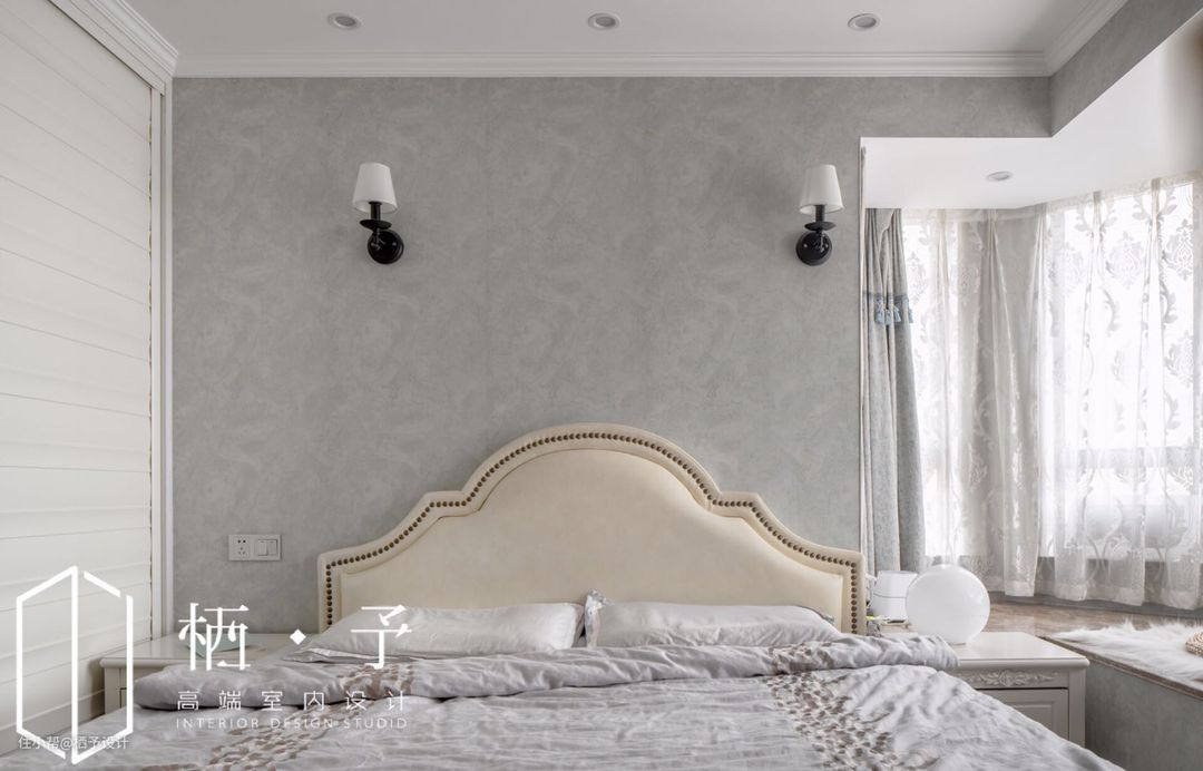 卧室的配色比较淡雅素净,灰色与白色为主色调,咖色做为点缀,感觉非常的舒缓舒适。