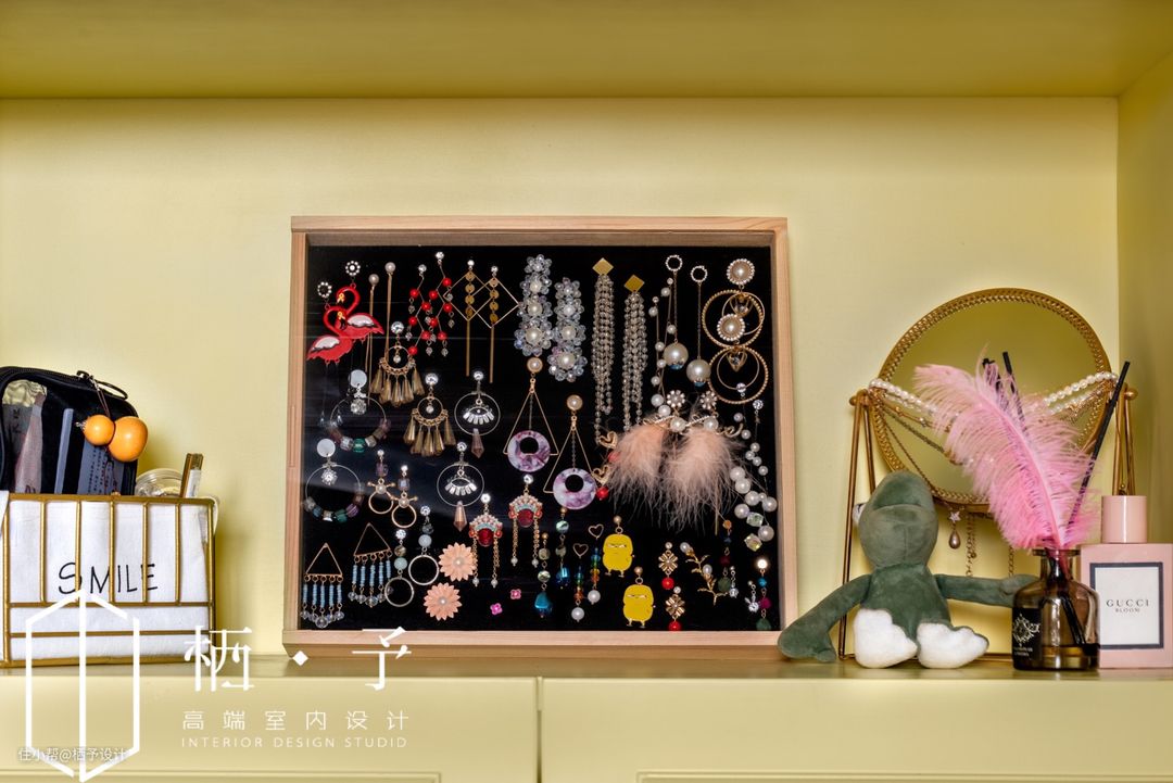 屋主小姐姐还是一位手工达人,进门鞋柜上面特意做了展示格,可以摆放一些平时自己做的耳环,是不是非常的心灵手巧。