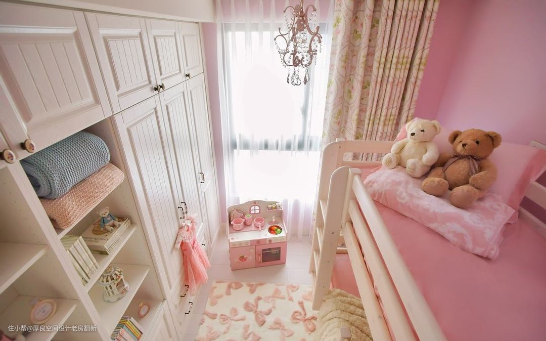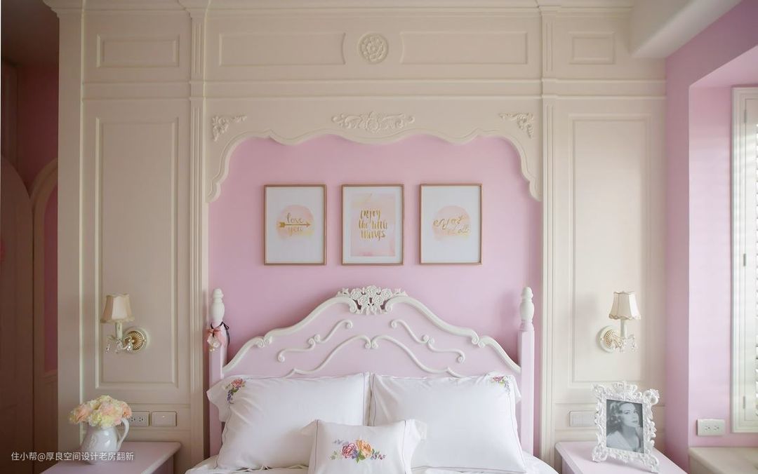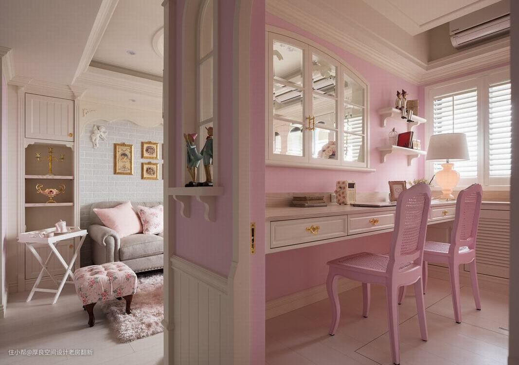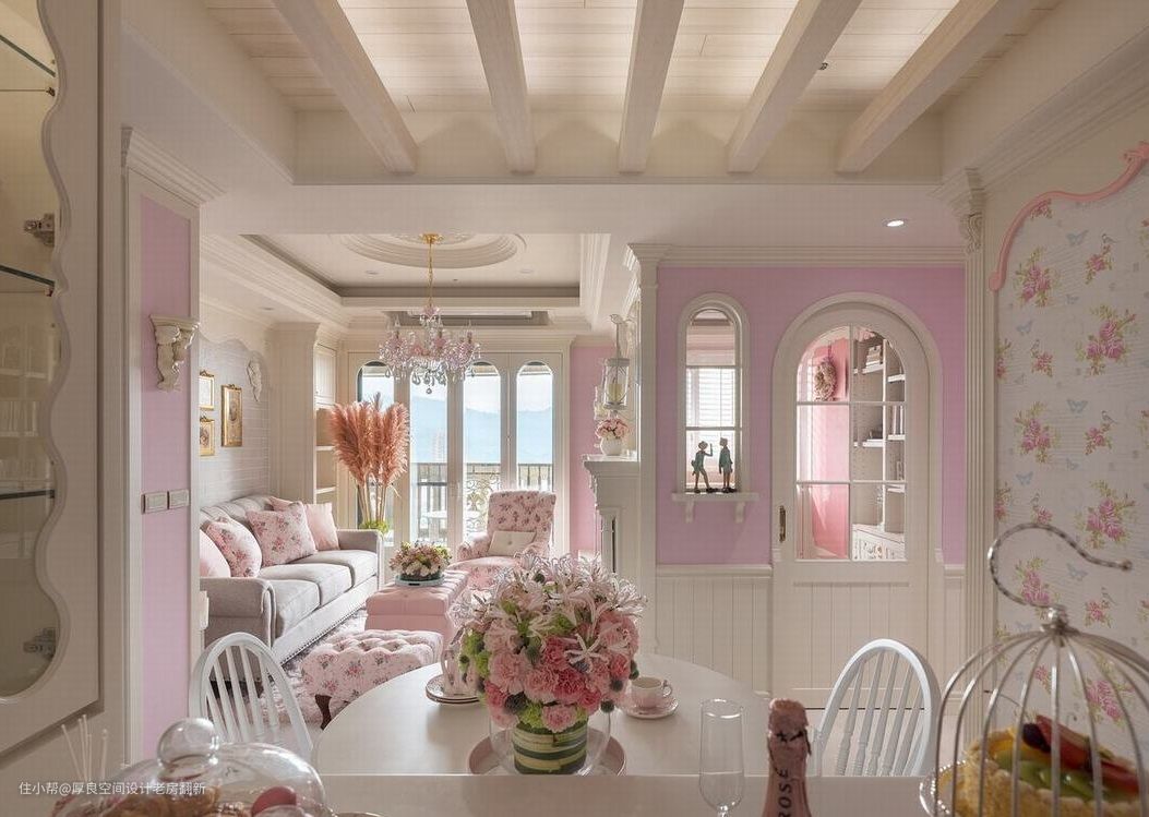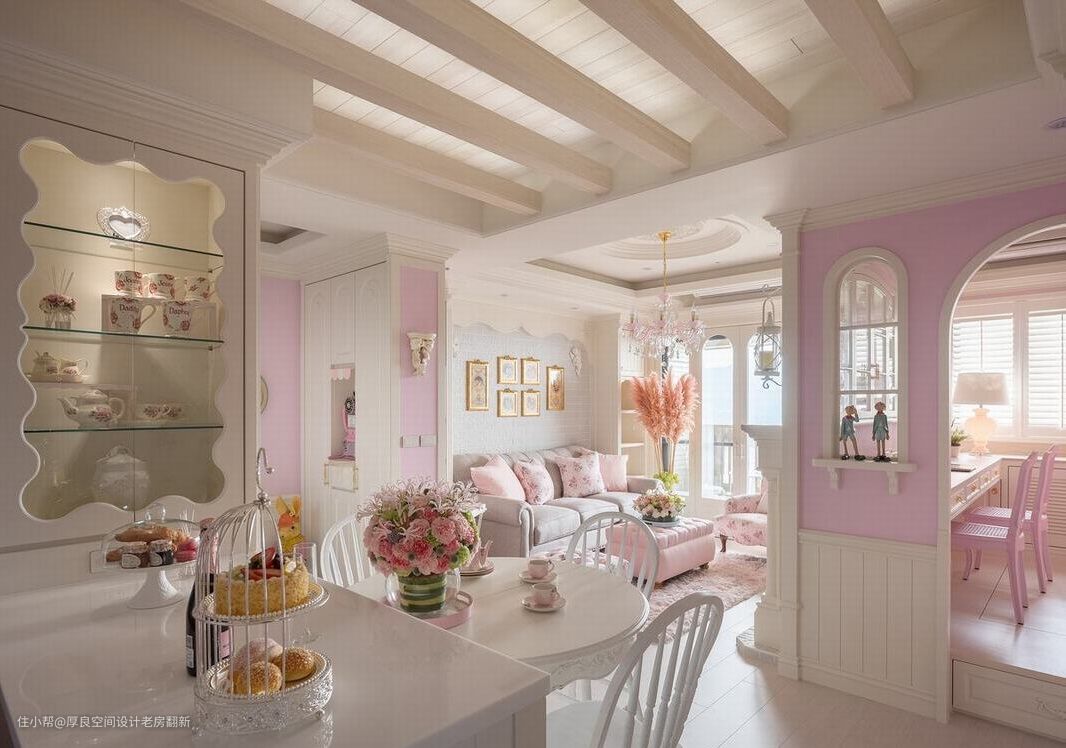 具有怀旧乡村情调的粉嫩色彩,营造整体无负担的柔和美感,在马卡龙粉的色调中,实现女主人的公主梦想。