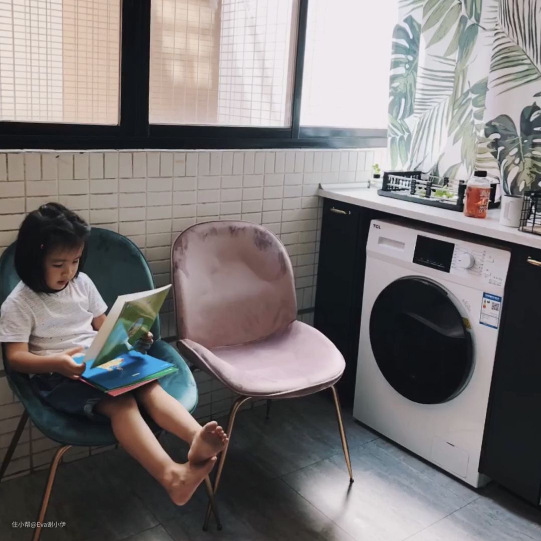 ② 甲壳虫椅子一直没有选到合适的颜色,最后挑了窗帘的同款绒布,特意找家具厂做了定制。