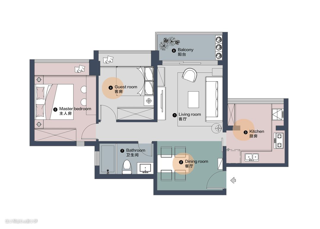 ③ 主卧是我心中最酷的【黑粉色】,正好家属喜欢BlackPink,我就用这个牵强的理由把他忽悠过去了哈( ⁼̴̀ .̫ ⁼̴́ )✧