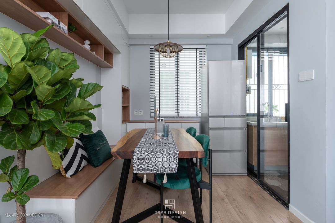 餐厅运用卡座的设计,节省空间,增大储物空间。#北欧 #卡座 #餐厅 #小户型