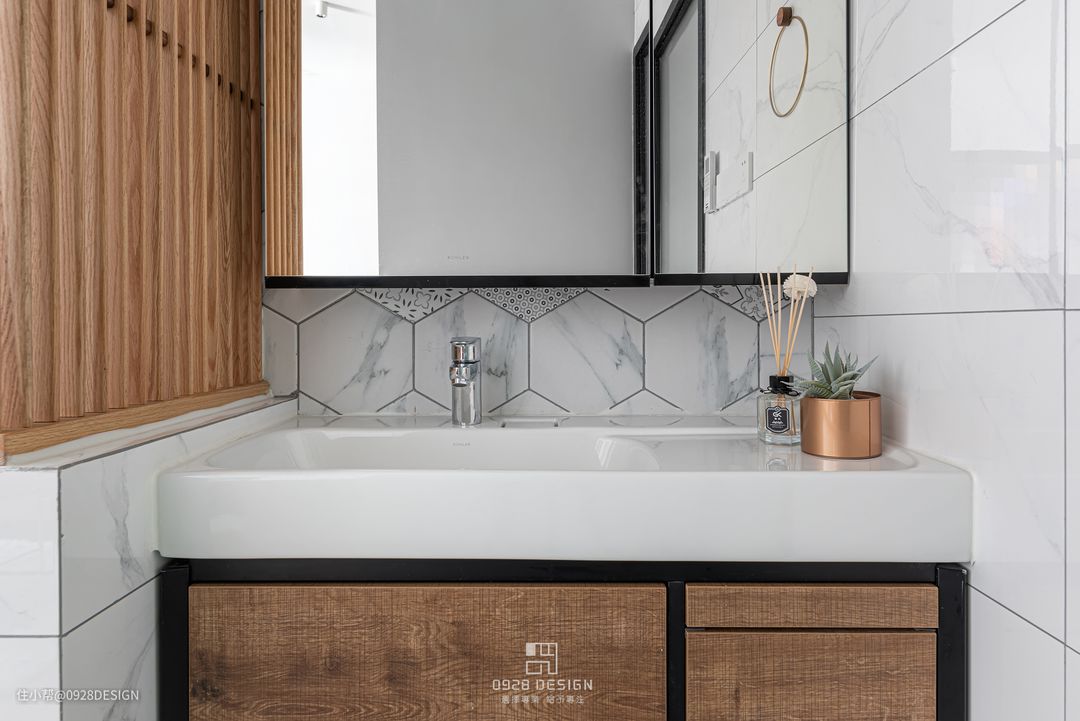 #北欧 #卫生间 #六角砖 #爵士白#镜柜 #浴室柜