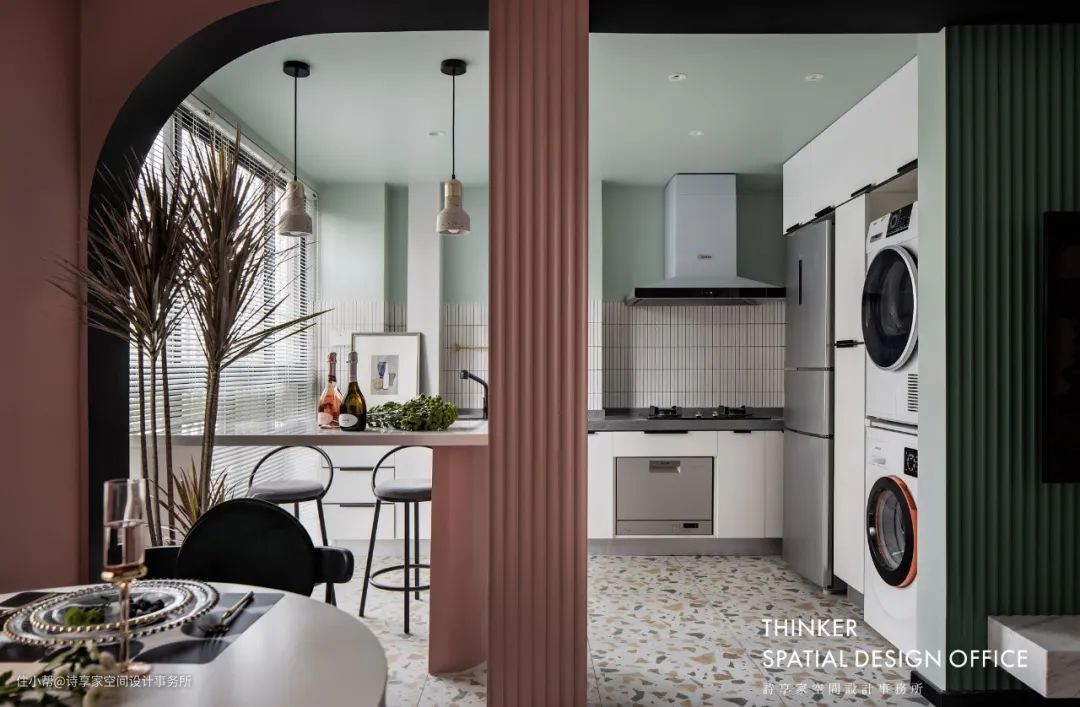 · 薄荷绿和水磨石,带来清爽舒适的视觉感受,谁说厨房一定油腻,它也可以成为浪漫的轻食区!