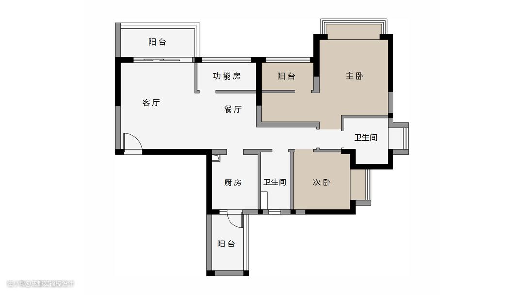 2. 功能区域、阳台区域利用率低