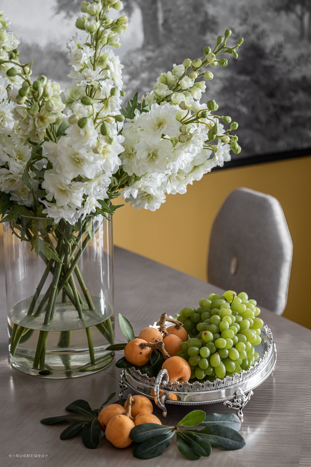 母亲从不丢弃日常对花与水果的采买,四周弥漫的花果香气会让人心异常平和,也让人敬畏珍视现在的生活。。#思南 #宏福樘设计 #餐厅 #餐椅