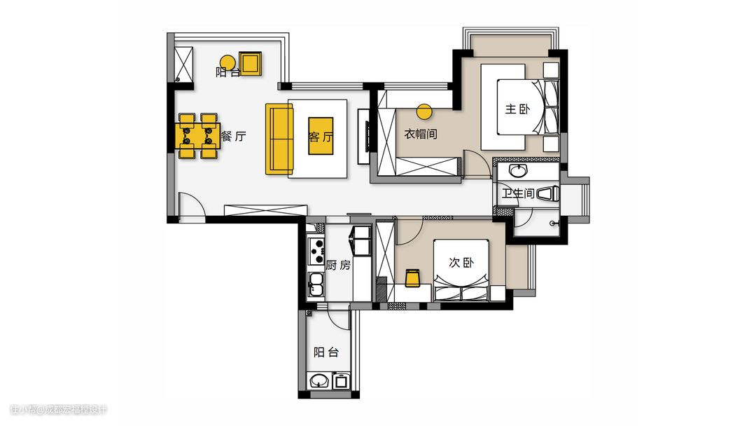 2. 拆除主卧阳台,重新将区域规划为衣帽间