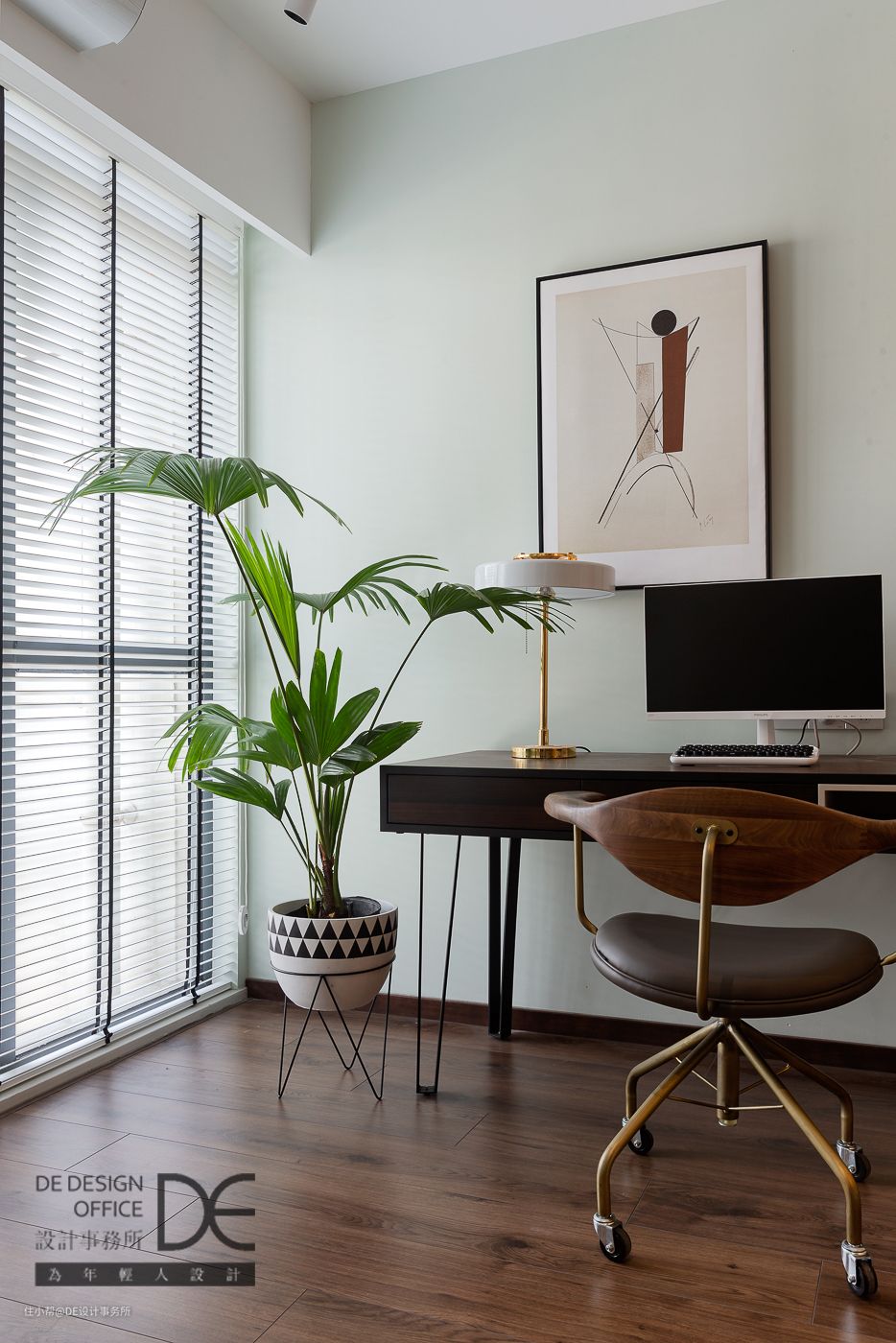 书房大面的落地窗,是卧室空间采光的主要来源。绿植与抽象画的点缀,让书房区域简约而不失文艺之感。