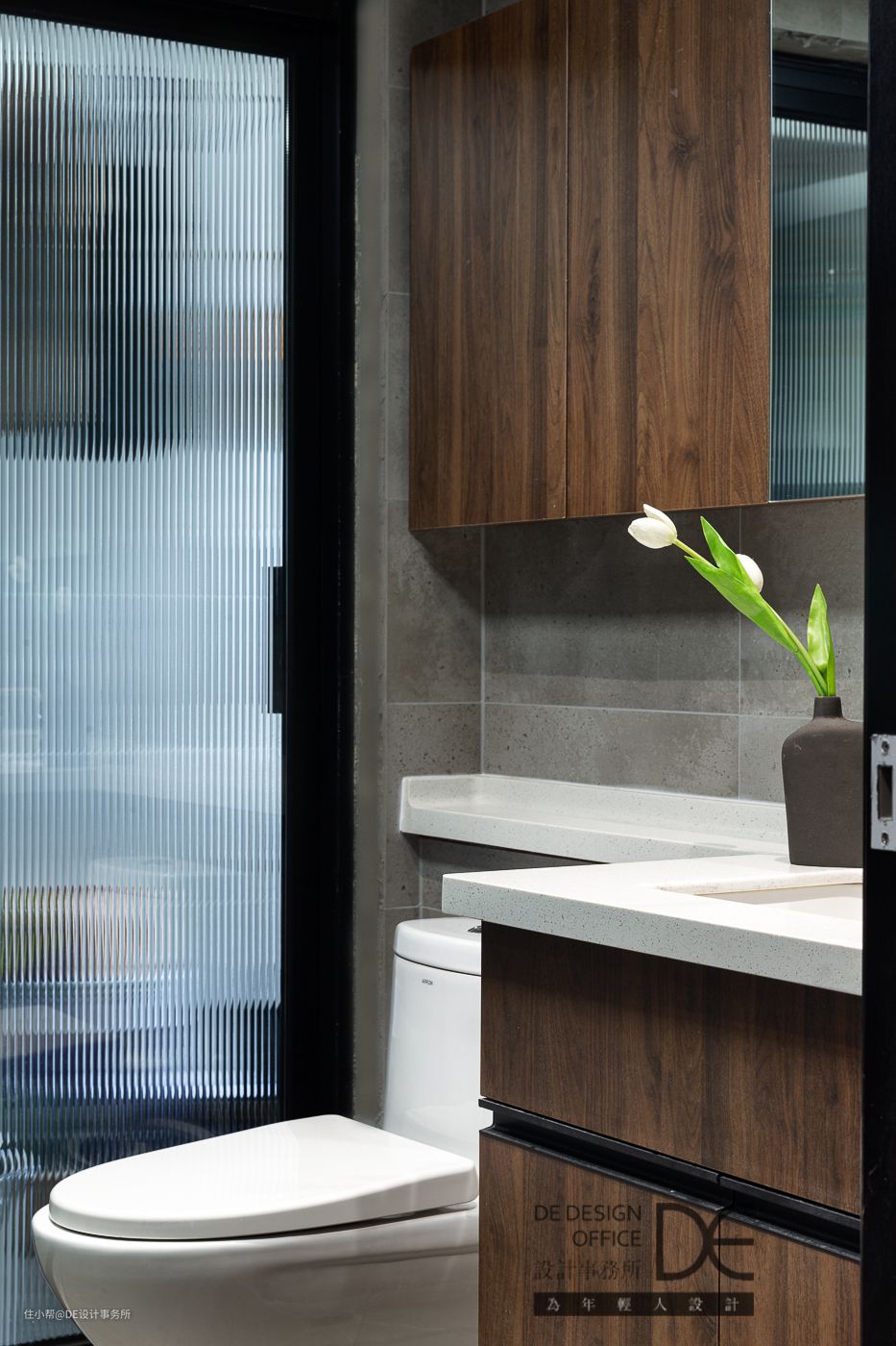 卫浴空间紧凑实用,与厨房相呼应的柜体丰富了储物空间,连通生活阳台的滑门设计增加了空间的通透感。