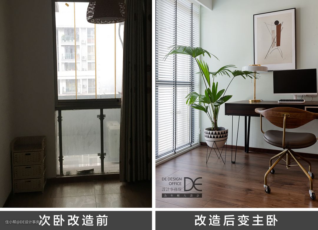 最终在局部区域增加了窗户和玻璃,引入部分光线进入卧室,配上百叶帘,可以使空间更透气又保证一定的私密性。原来规划的次卧区域也调整成主卧。