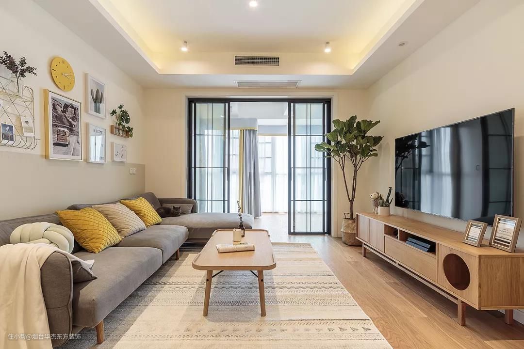 这是一个106㎡简约原木风装修,暖色调的墙面,搭配原木风的家具和木地板等,让家显得愈加温暖。