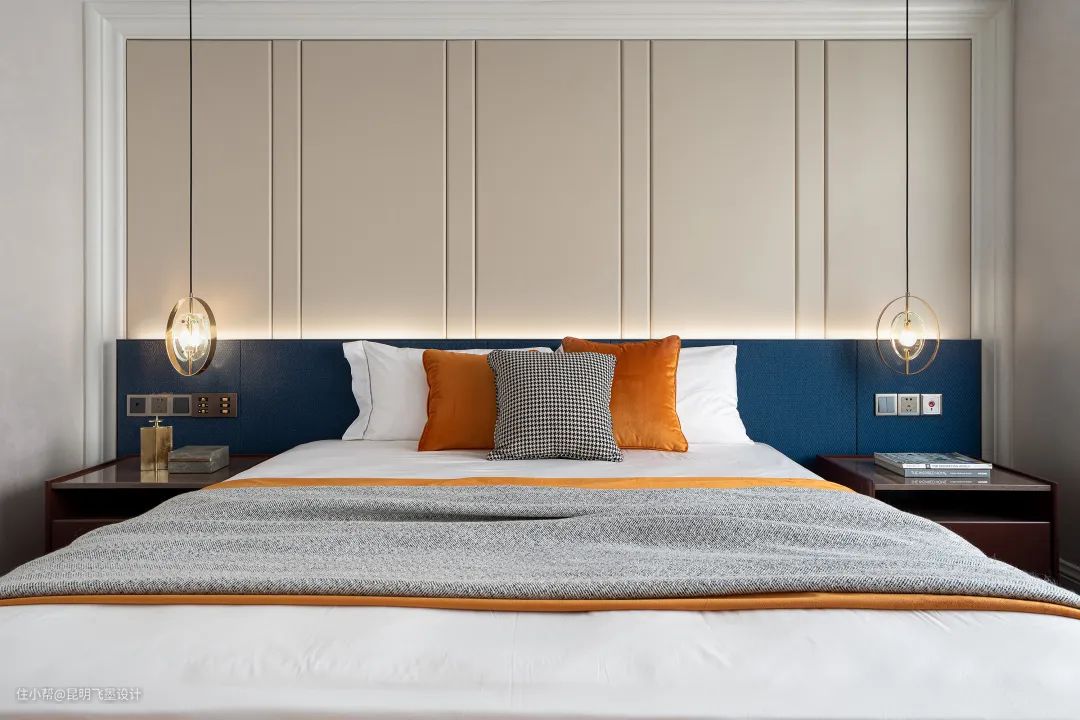 床品的几何元素与轻柔绵软、触手可及的质感使空间更加精尚。