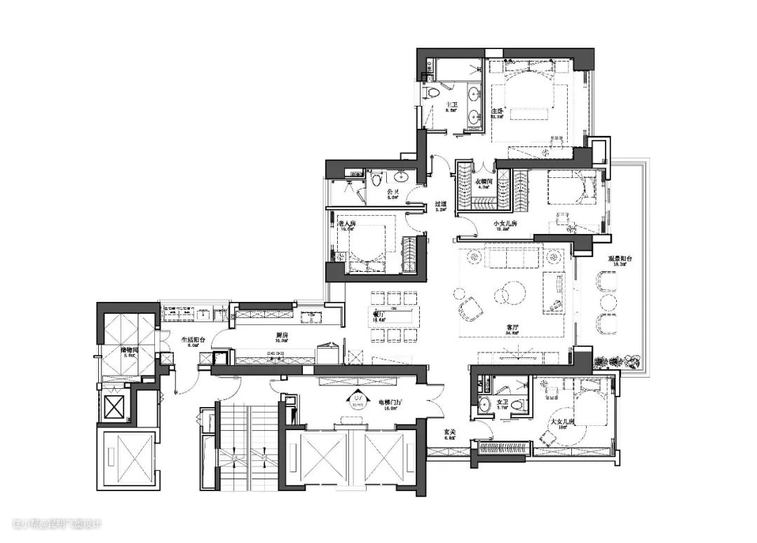 本案是一套面积为175平米的大平层,业主夫妻有着不同的审美需求,男业主偏好奢华尊贵的感觉,女业主喜欢优雅清新的状态,彼此尊重对方的喜好,用爱铸造最独一无二的家。在此,美的体验源于互相理解,彼此成就。