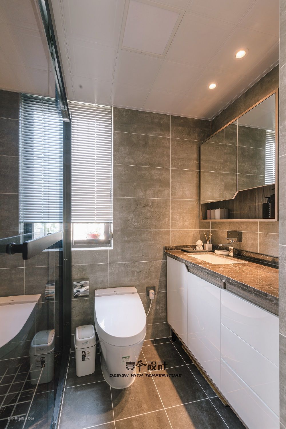 灰色墙砖颜值很高,干湿区都选择了同色纹理墙砖,打造浑然一体的空间感。