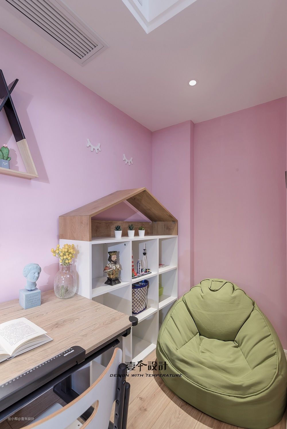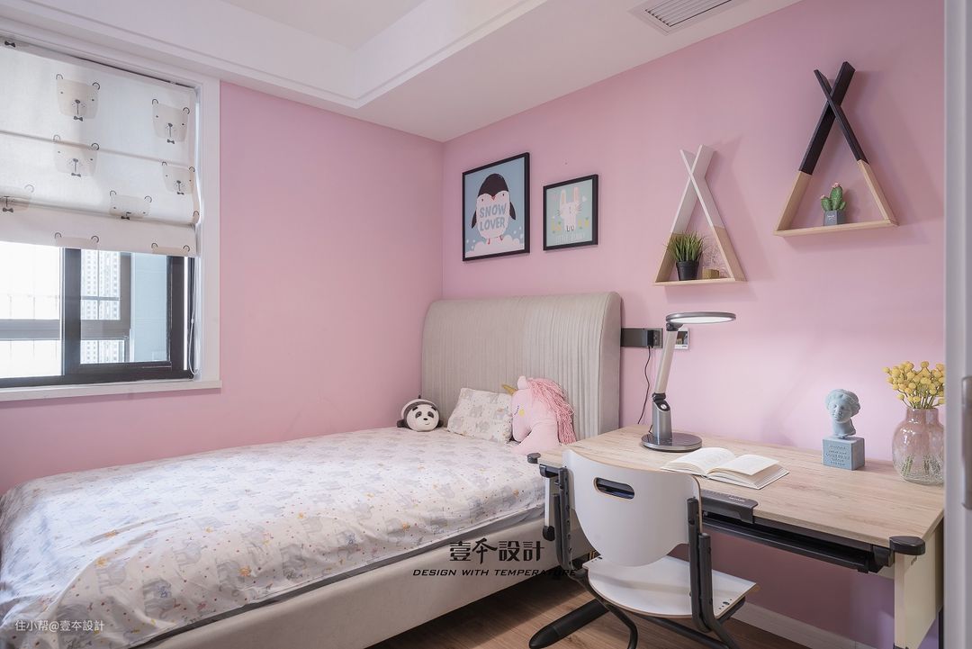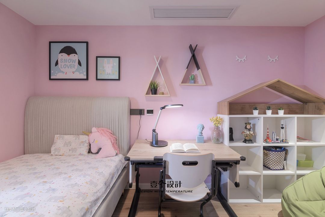 女儿房整体采用粉粉的色调,小小的空间里,睡眠,学习,阅读,娱乐空间一应俱全,让整个空间充满趣味和童真。