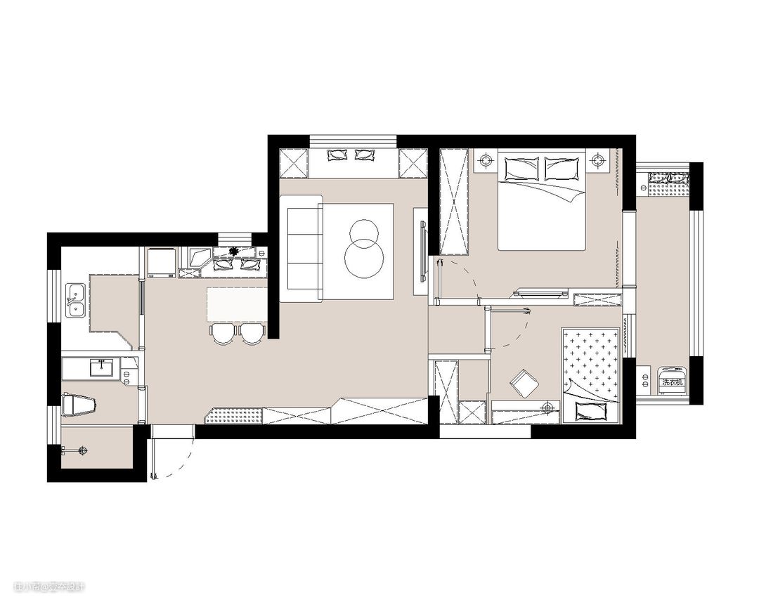 3:卫生间墙外扩,增大空间使用面积。