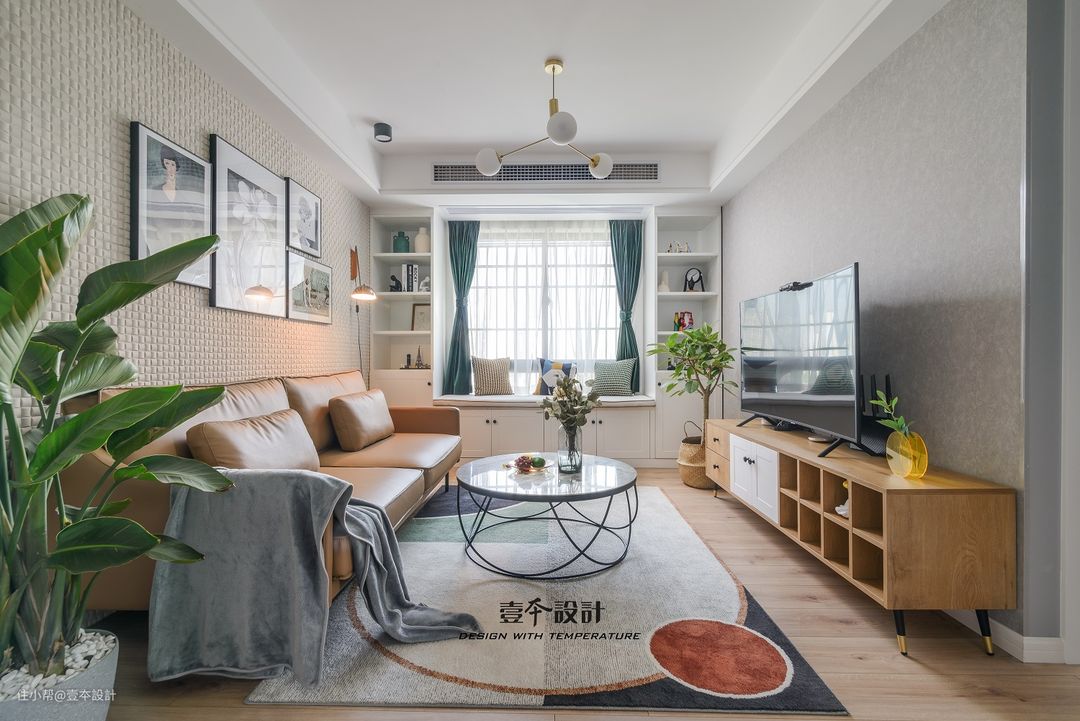 自然的光线通过白色窗帘投撒进来营造敞亮明净的空间氛围。沙发旁的飘窗设计既可作为室内一景装饰,亦可作为阅读区,功能和意境都不耽误。