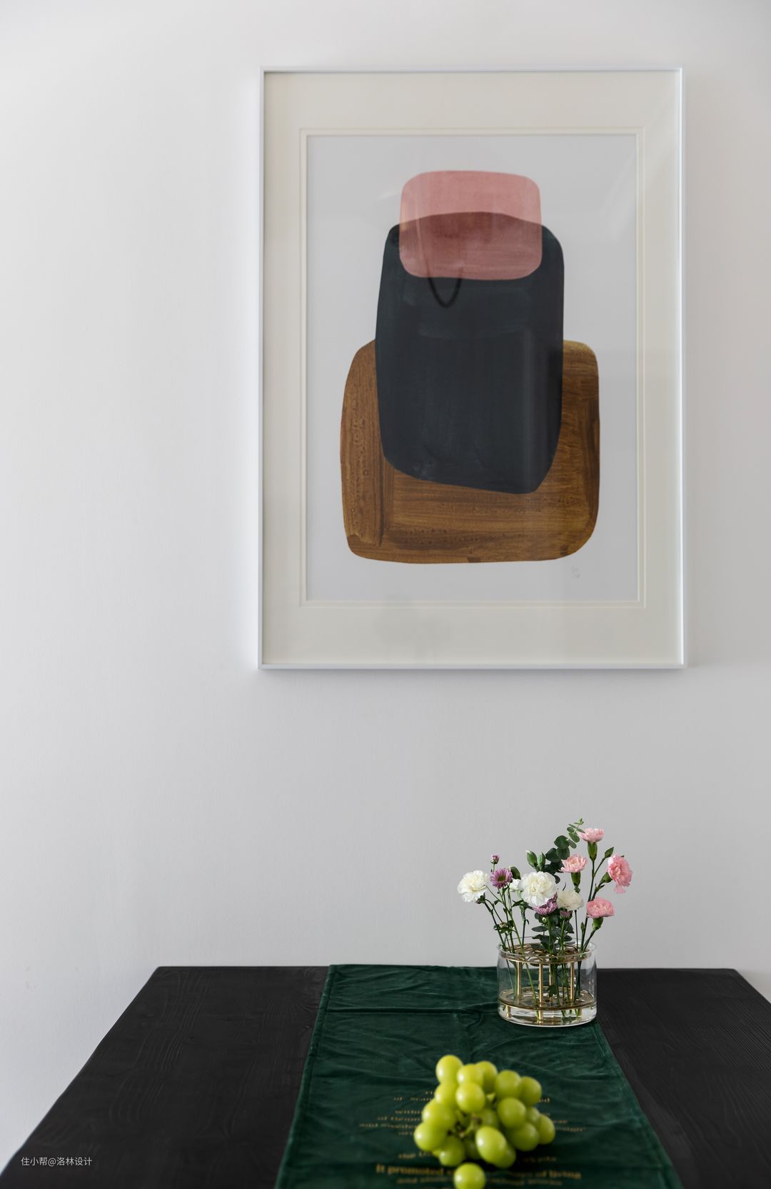 餐厅空间连着客厅和门厅,恰到好处地利用了过渡地带,餐厅装修会直接影响用餐的心情,为了给女业主营造轻奢的感觉,在细节上花了点小心思。比如,顶部是gubi的吊灯,桌腿蹬腿均采用黄铜,墙面则刷了浅浅的进口涂料,内敛又不乏气质。