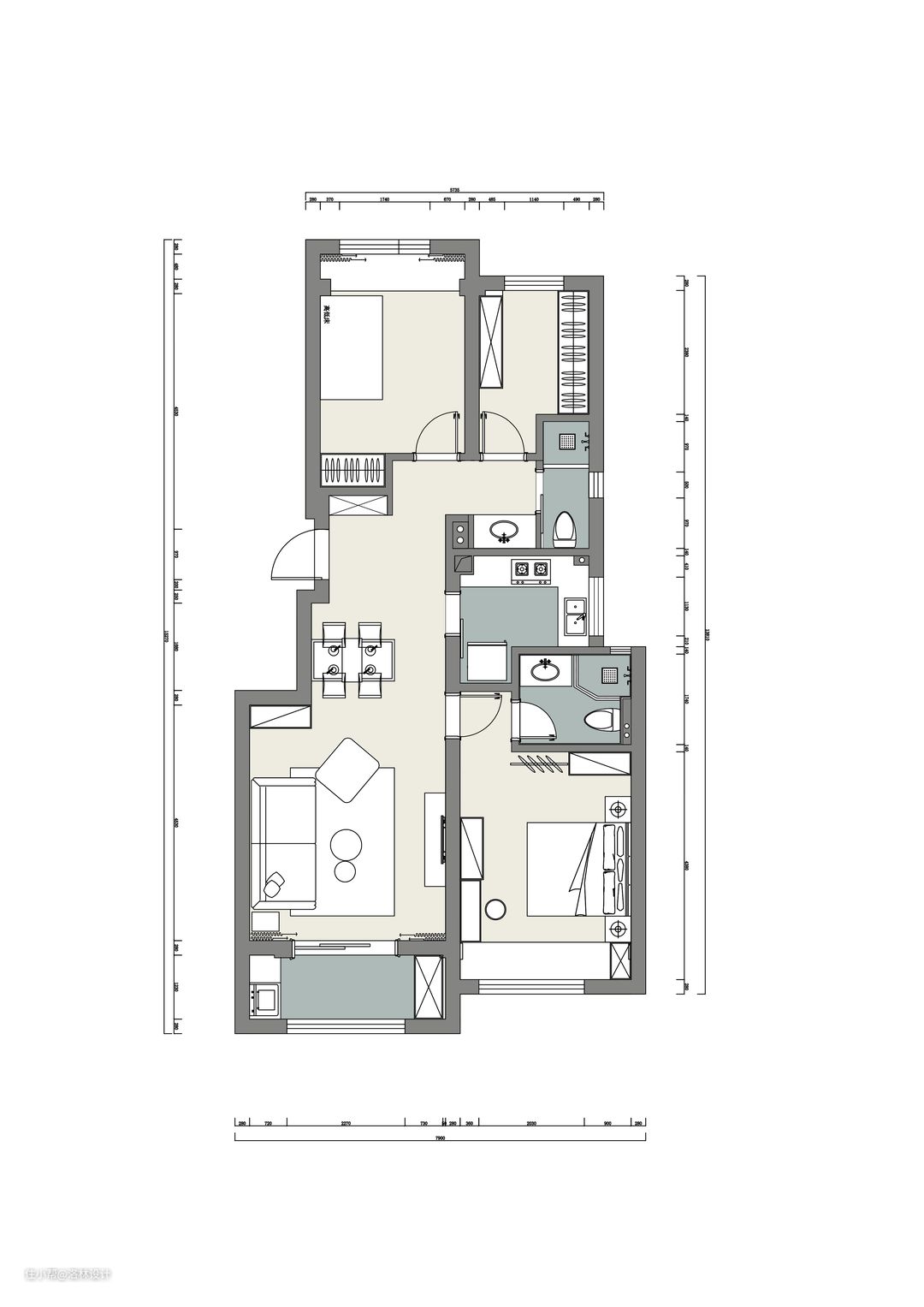 这是一套新交付的精装修户型,原本布局合理,基本已达到可拎包入住的标准,但全户型没有衣柜,空间也没有得到充分利用。业主全部预算在25万内,设计师在首先解决收纳问题的基础上改造布局,再将家具饰物等添置进来,使得空间整体上更加趋于合理化、人性化和时尚感,并最终将成本控制在20万。