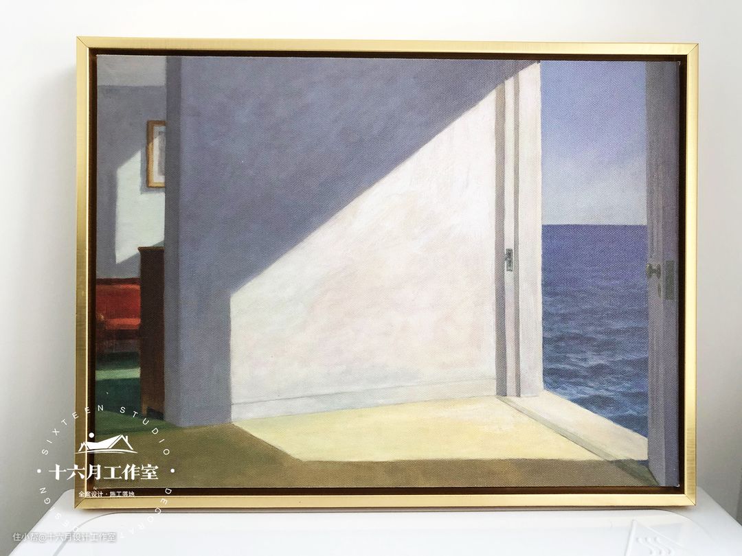 阳台做嵌入式的洗衣机把空间利用的刚刚好,丝毫不浪费,这幅画增加了整个空间的层次感。