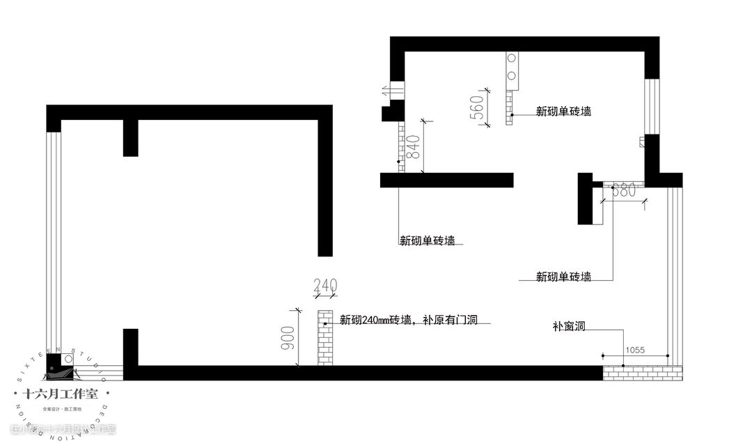 ⑤主卧门口新砌240mm的砖墙,补原有的门洞