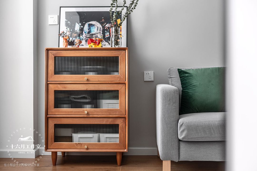 采用半通透的长虹玻璃做隔断(拍照的时候还没安装好),分割空间的同时,增加了空间的视觉通透性。