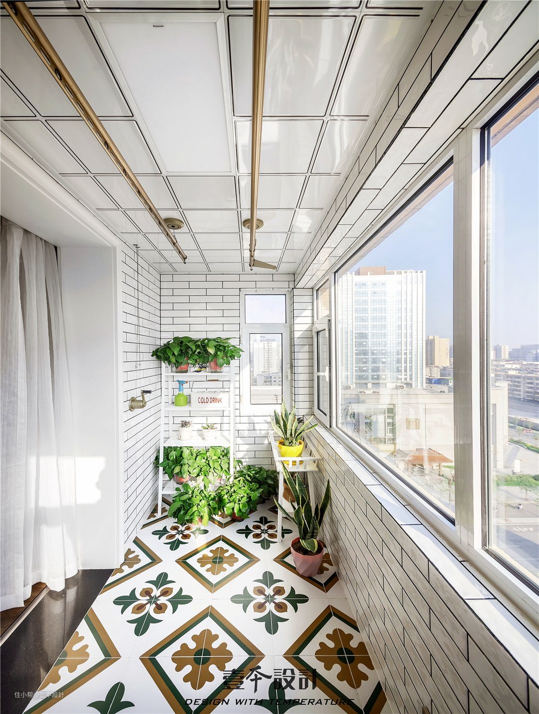 担心花砖花里胡哨不耐看?看看本案阳台的复古小花砖,端庄素雅,个性大方,艺术感满满的。