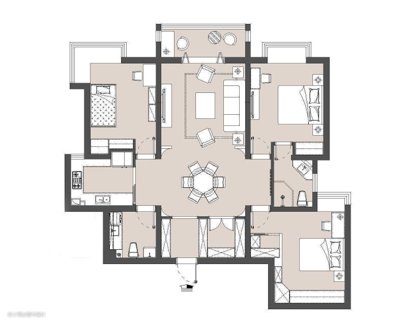 2:客餐厅面积占比过大,空间利用率不高。