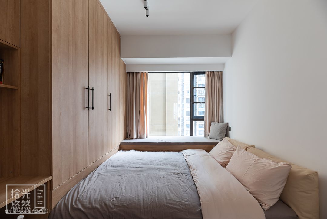 多功能房面积比较小,主要为夫妻俩使用,具有偶尔留宿,办公阅读、和储物的功能。 从改造上,采用榻榻米的形式压缩空间,增加衣物空间的收纳,作为偶尔留宿使用。书桌和书柜提供了业主一个隐私的工作与休闲的场所。