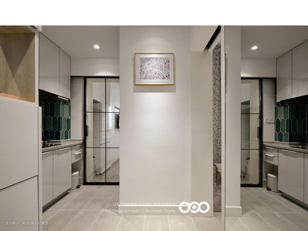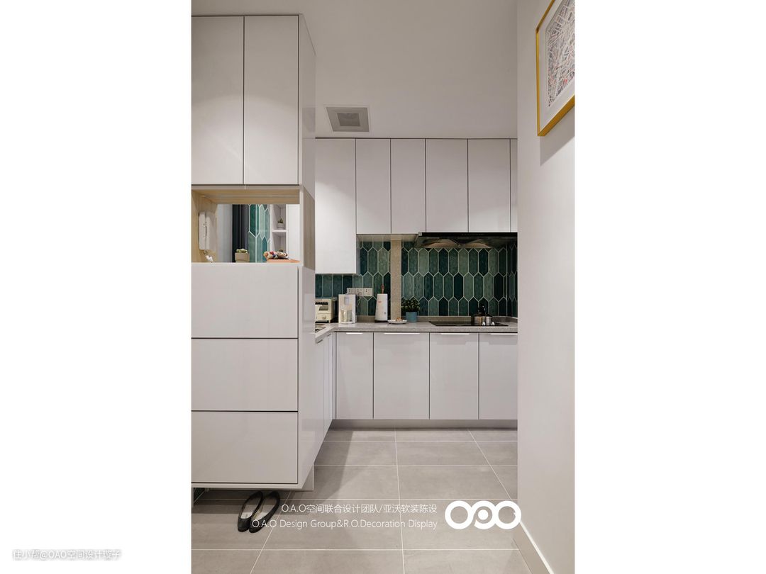 与入户门一柜之隔的厨房,特别让归家人有种两点一线,离开工作回到家务的生活疲惫,而一副中意的挂饰,可以悄悄让回家变的有了仪式感。