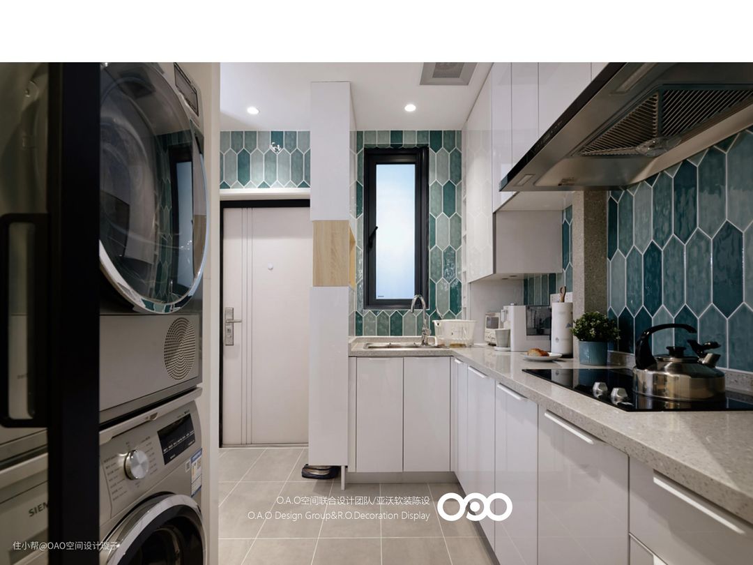 与入户门一柜之隔的厨房,特别让归家人有种两点一线,离开工作回到家务的生活疲惫,而一副中意的挂饰,可以悄悄让回家变的有了仪式感。