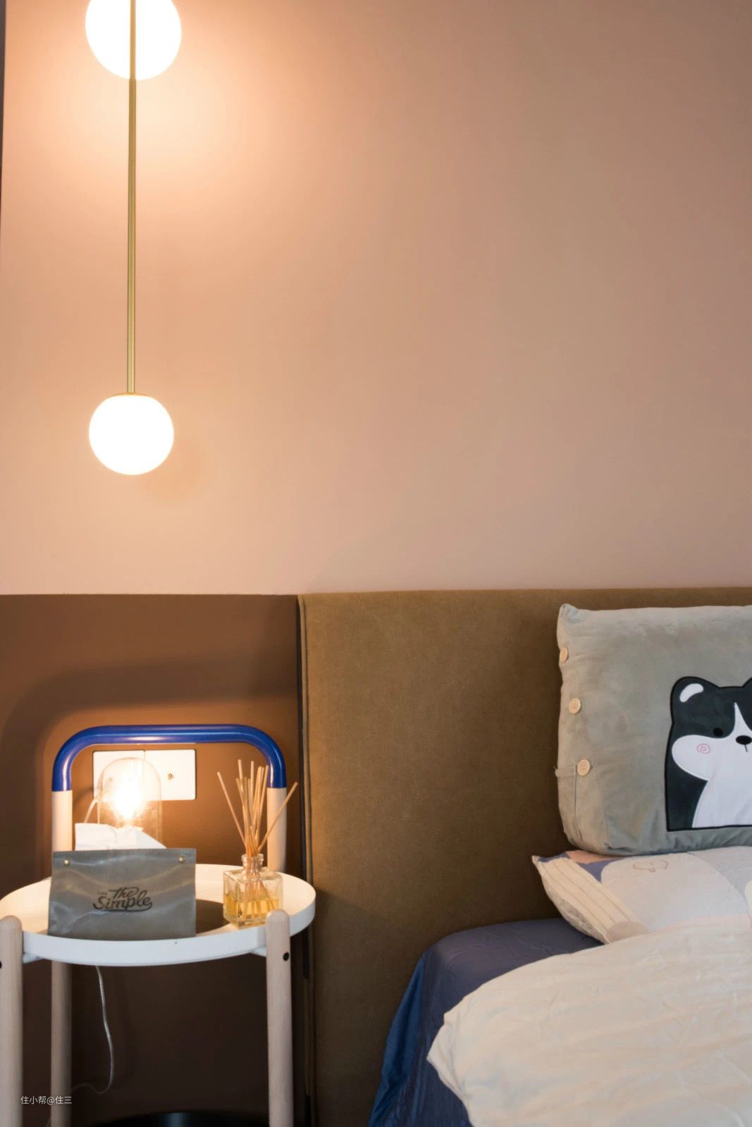 床头的吊灯也是阿里巴巴买的,略有色差但是便宜!!床头柜是宜家的限量推车打折时采购,跟床品还挺搭配的,看的出来床品来自野兽派吗~😂