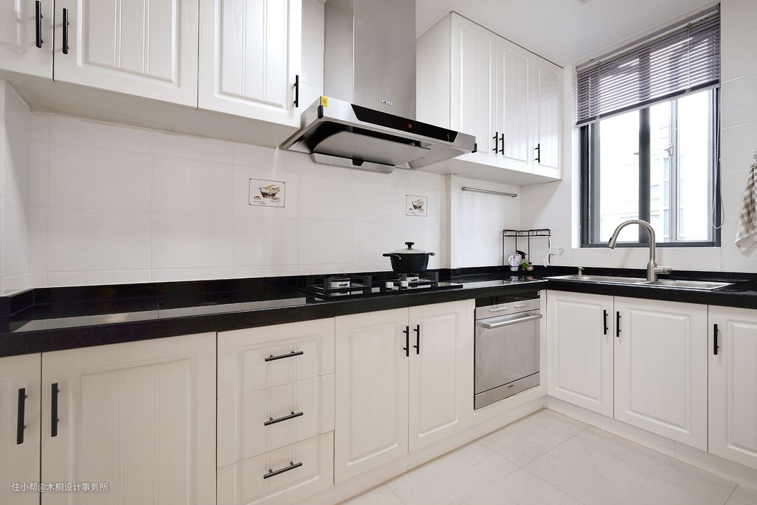 无需大刀阔斧,以黑、白、灰进行色彩穿插,层次分明,搭配简练,厨房空间更显干净清爽。