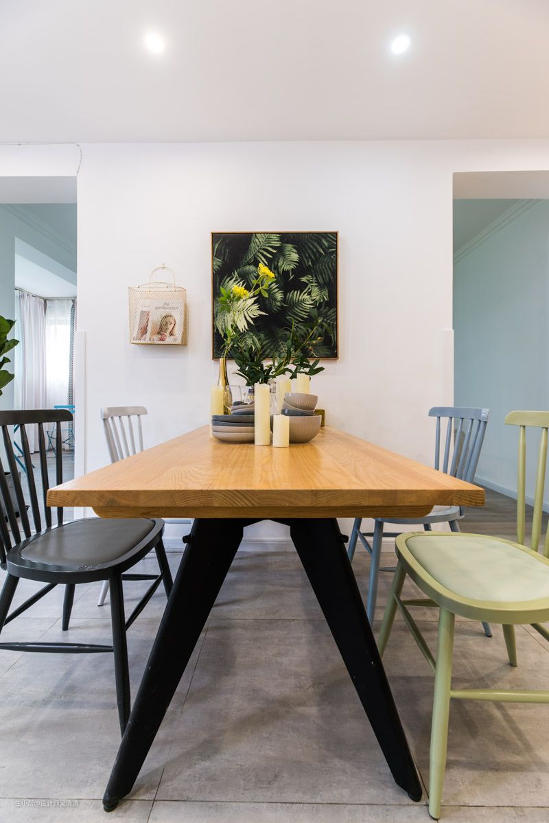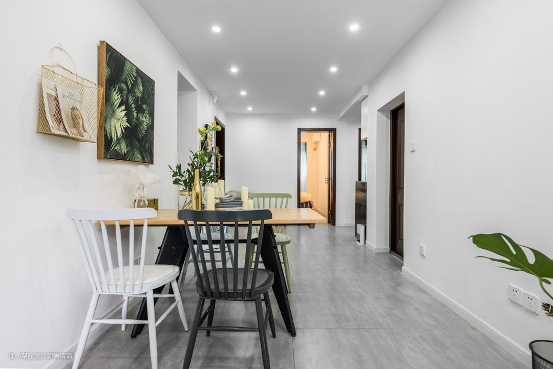 原本的餐厅被另一个设计师改为了客厅,但是在我综合考虑之后还是单独作为餐厅使用了,在餐桌处右边单独开了一个门洞,这样一来整体也会协调一点(两处门洞都是有搭配门和门帘哒!只是拍照的时候还没安装呢)