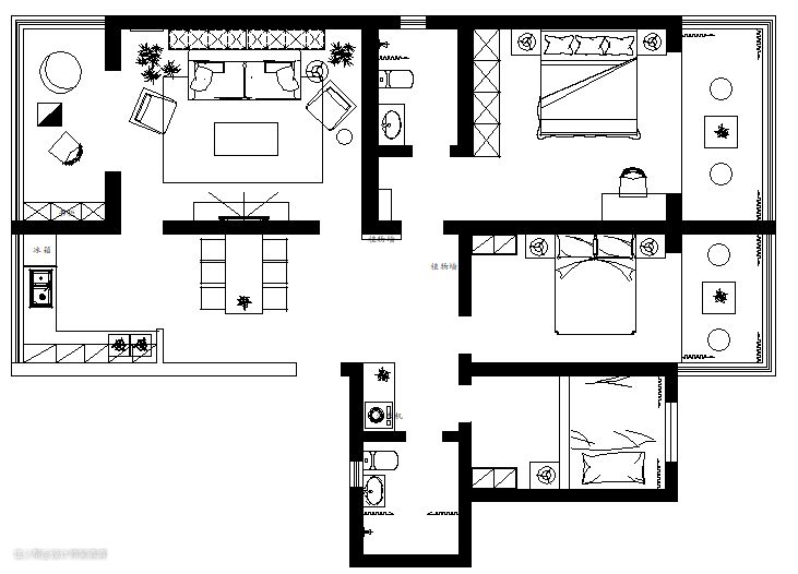Emm……当你遇见了这篇案例,你会想翻新自己的家… 先说说与这套房子的关系吧!屋主找了一个装修公司设计师私下做了,也出了很多效果图,但是种种原因后面找到了我,这也出现了两个设计师的分歧… 下面进入正题吧…… 原本没有单独的客厅和餐厅,客厅改成了卧室,也就是这个房间被原来的设计师改成了套四,客厅和餐厅就在入户处…真的很不讨喜的一个布局呢!(至于这份cad是前任设计师发给我的,现场没办法量房我就接受啦) 后面我接手这套房子的设计过后就让A设计师把原本封好的墙面重新敲开,做了一个客厅和两个门洞,这样一来方便多了 考虑到屋主已经签完合同,并且全部承包给了装修公司,所以我只能在已经确定的施工合同上不能多做设计(因为材料什么的已经选好了) 下面为平面布局图