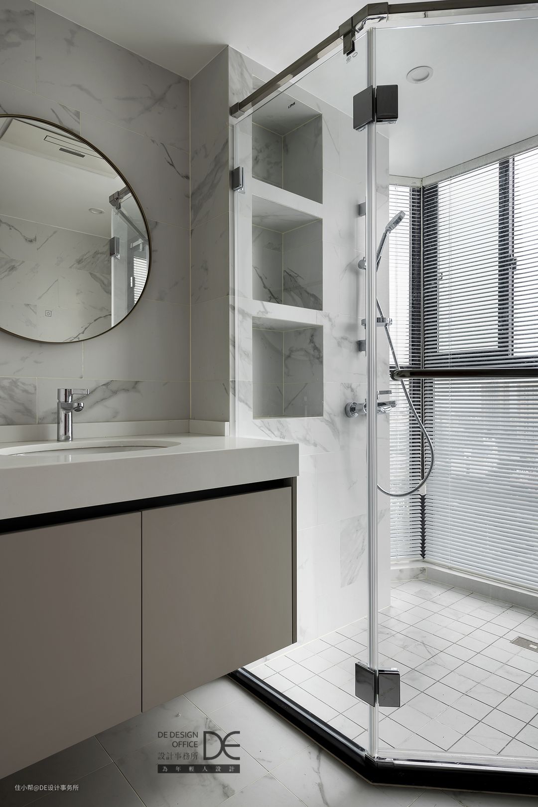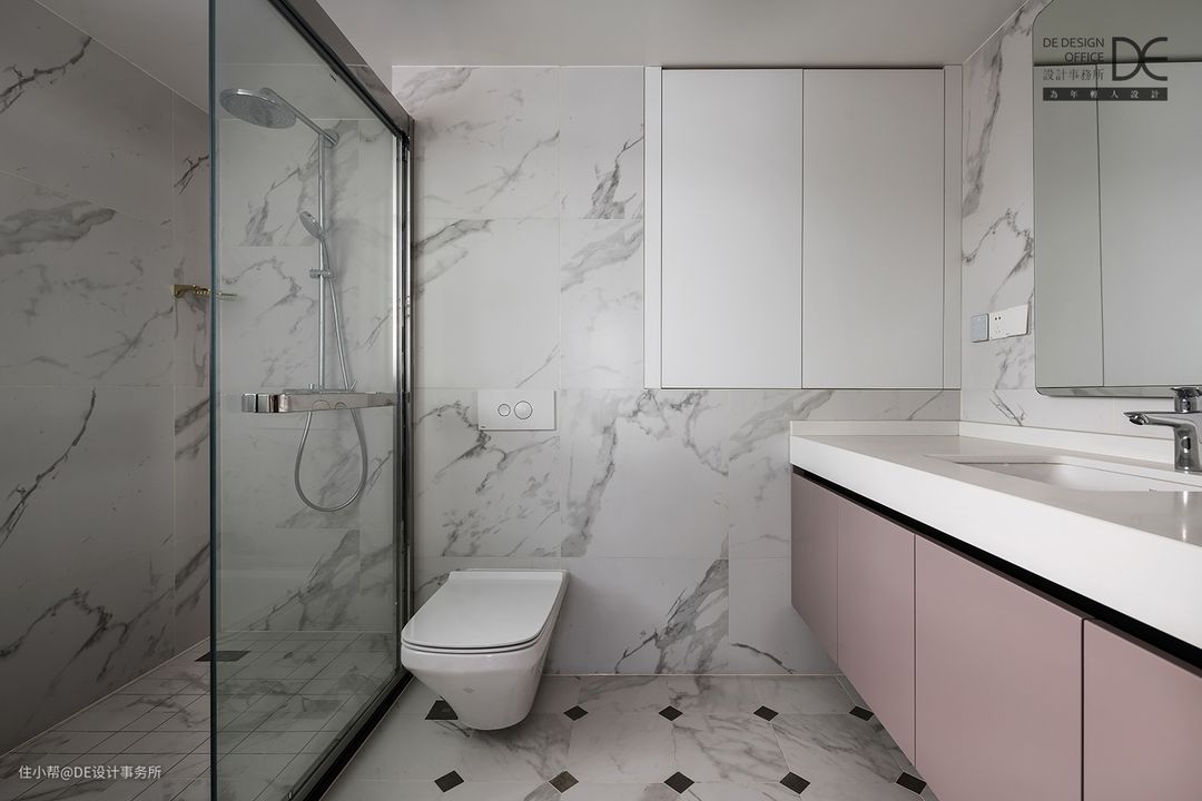 次卫也同时承担了储物功能,在满足卫生间舒适功能的基础之上,巧妙的运用浴室柜以及壁龛来开辟储物新渠道。淋浴间自然采光充足,淋浴体验极佳。