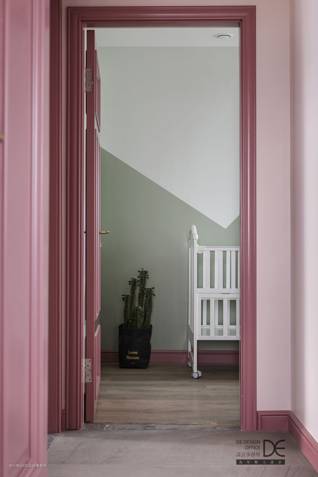 敞开的房门似乎是在迎接它的小主人,墙面清新的绿色让人无比放松,墙角绿色的仙人掌为空间带来了生机和活力。房间里面是未知的世界,等着它的主人去探索和创造。
