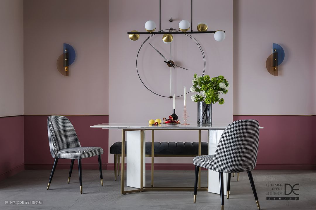 乍一看,整个客餐厅都充盈着粉色,但静观一会儿会发现,这个空间绝不止「粉色」这么简单!