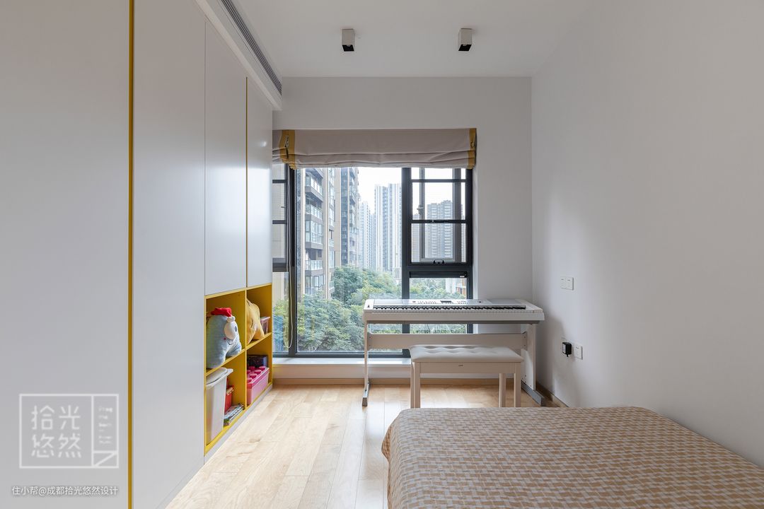 儿童房的接近9平米的大衣柜,通过白色与黄色的点缀,可以带来一些童趣,能收纳很多东西。简单克制的儿童房,让小朋友注意力聚焦与集中。