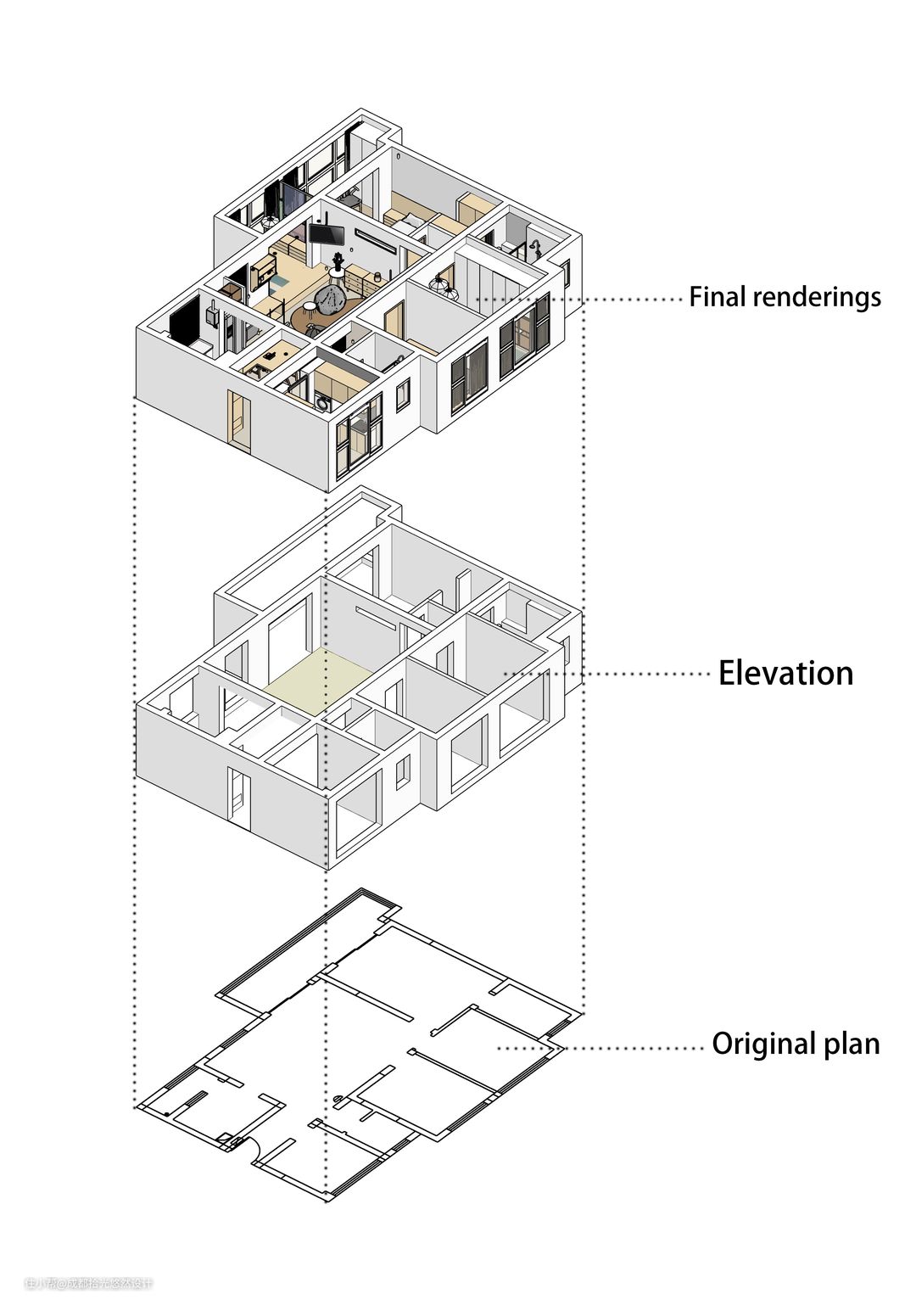 屋主需求Ⅰ ● Demand 1. 原户型,大门正对主卧门,进门右边的房间太小,不到8个平方,且完全没有采光。虽然是横厅,但是开间只有6米。 ● Solution 1. 对过道玄关进行了改造,把主卧的门改到了侧边,进门看到的就是一处玄关。 ▂ 屋主需求Ⅱ ● Demand 2. 厨房很小,布局不合理,生活阳台只有90厘米宽,除了放洗衣机外,完全无法晾晒。 ● Solution 2. 通过厨房与生活阳台结合,打造了一个L型厨房加岛台餐厅的形式,弱化了客厅功能。 ▂ 屋主需求Ⅲ ● Demand 3. 希望有浴缸与淋浴同时存在,喜欢温馨,浅色调的风格,整体能好打理卫生的设计。 ● Solution 3. 主卧通过一系列改造,增加了步入式衣帽间。挤下旁边的卧室,获得了一个更大径深的卫生间,同时设置了嵌入式浴缸和淋浴。卫生间通过壁龛来实现置物,避免外露影响美观。