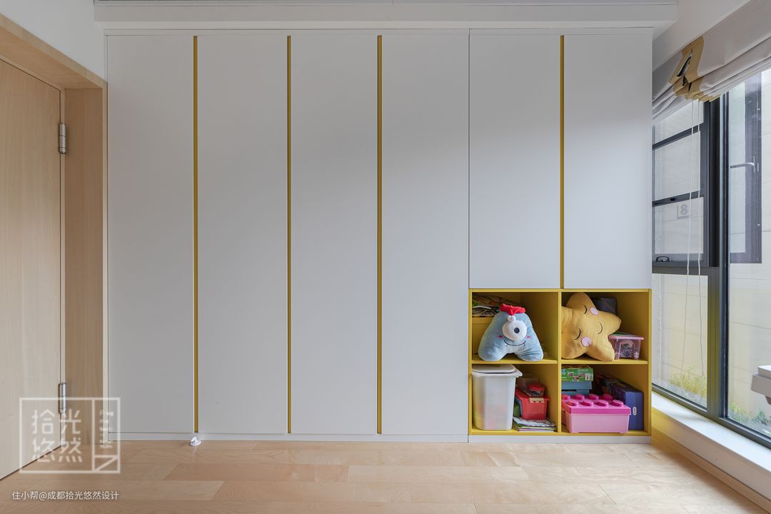 儿童房的接近9平米的大衣柜,通过白色与黄色的点缀,可以带来一些童趣,能收纳很多东西。简单克制的儿童房,让小朋友注意力聚焦与集中。